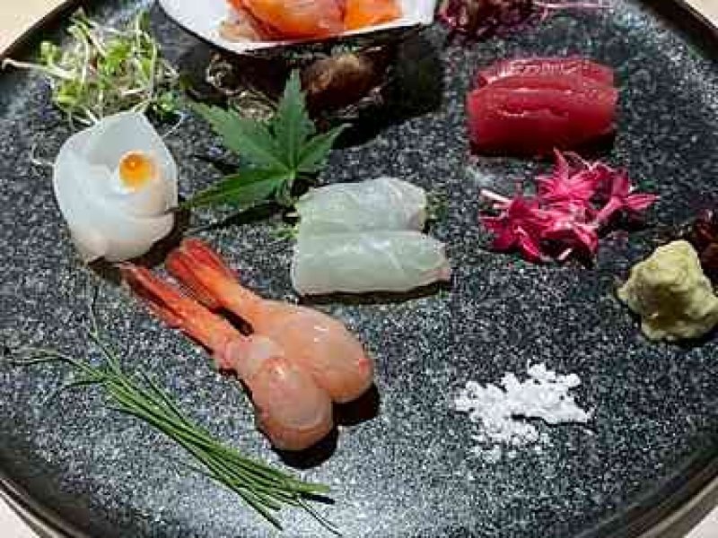 (squid, tuna, flounder, striped jack, otoro, sea bream, hirasu(yellowtail), kuruma shrimp, abalone, sea urchin)