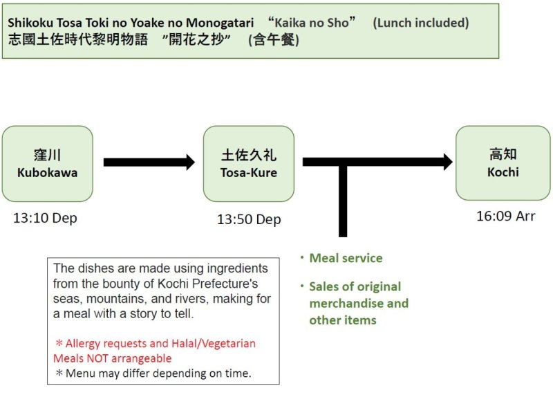 【Shikoku Sightseeing Train】Toki no Yoake no Monogatari (Kaika no Sho) Lunch meal set included/【JR四國觀光列車】時代黎明物語(開花之抄)含午餐
