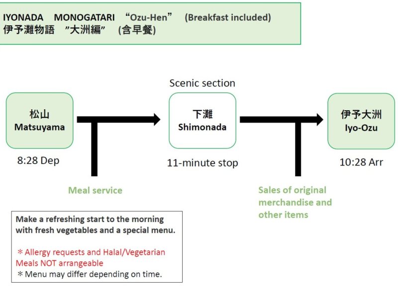 This product includes a train ticket for the "Iyonada Monogatari" and a meal.